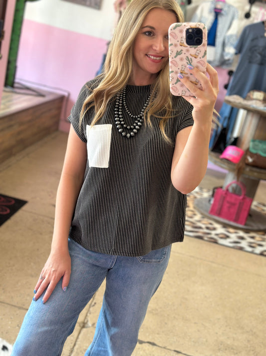 Black Ribbed Pocket Shirt