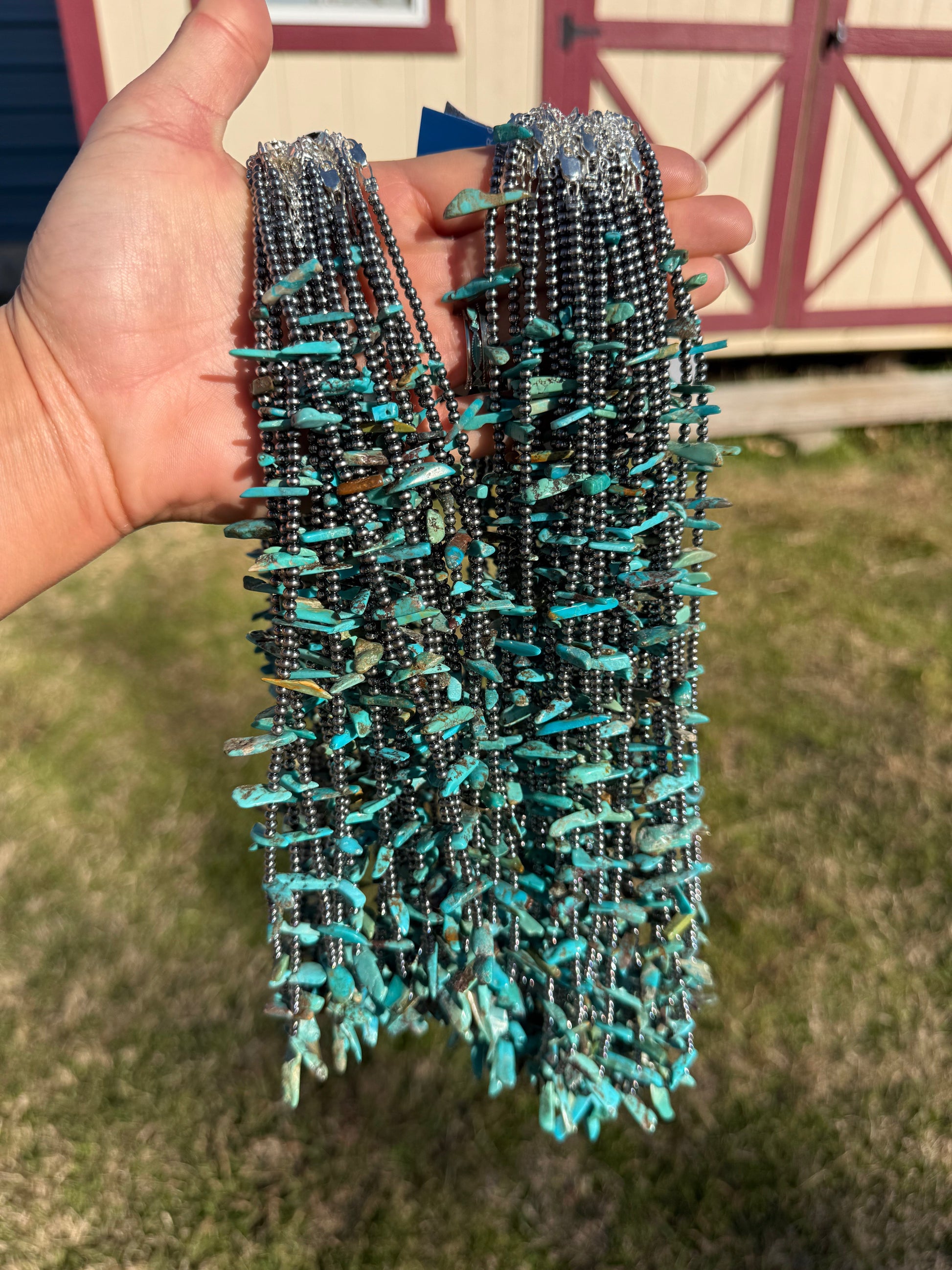 • Long blue turquoise beads